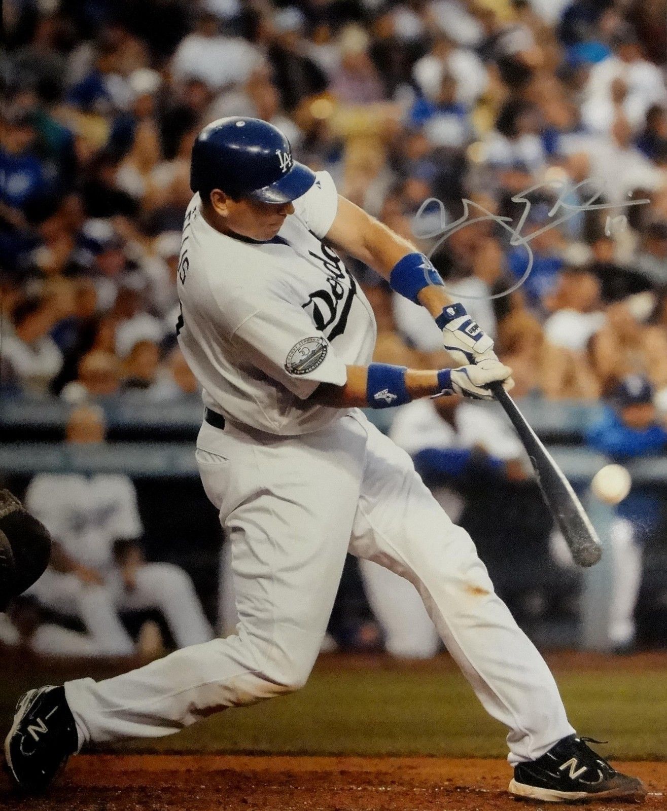 AJ Ellis Hand Signed Autographed 16x20 Photo LA Dodgers Swinging Silver ink