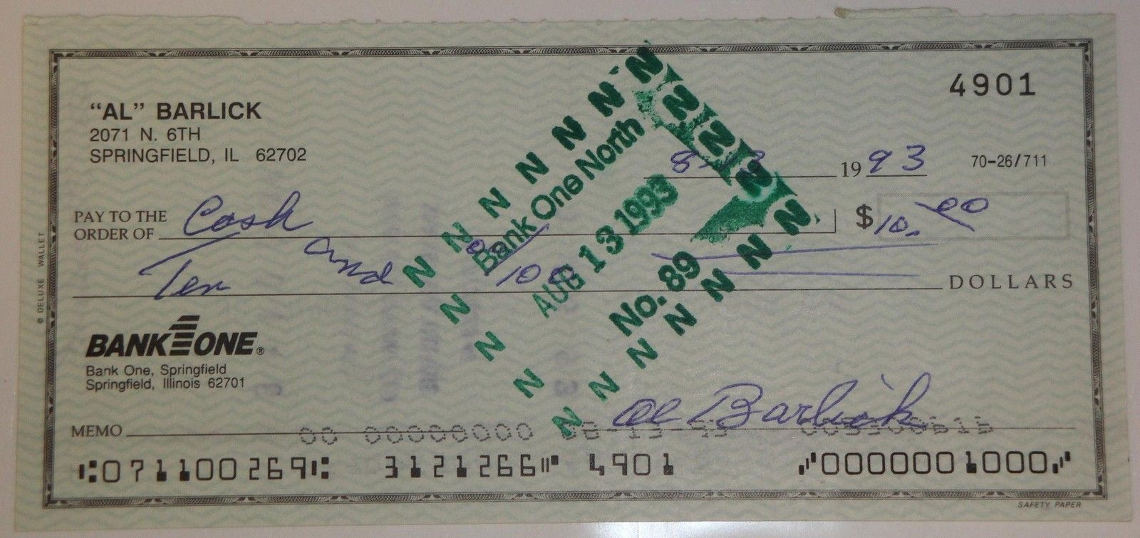 Al Barlick Hand Signed Autographed Personal Check # 4901