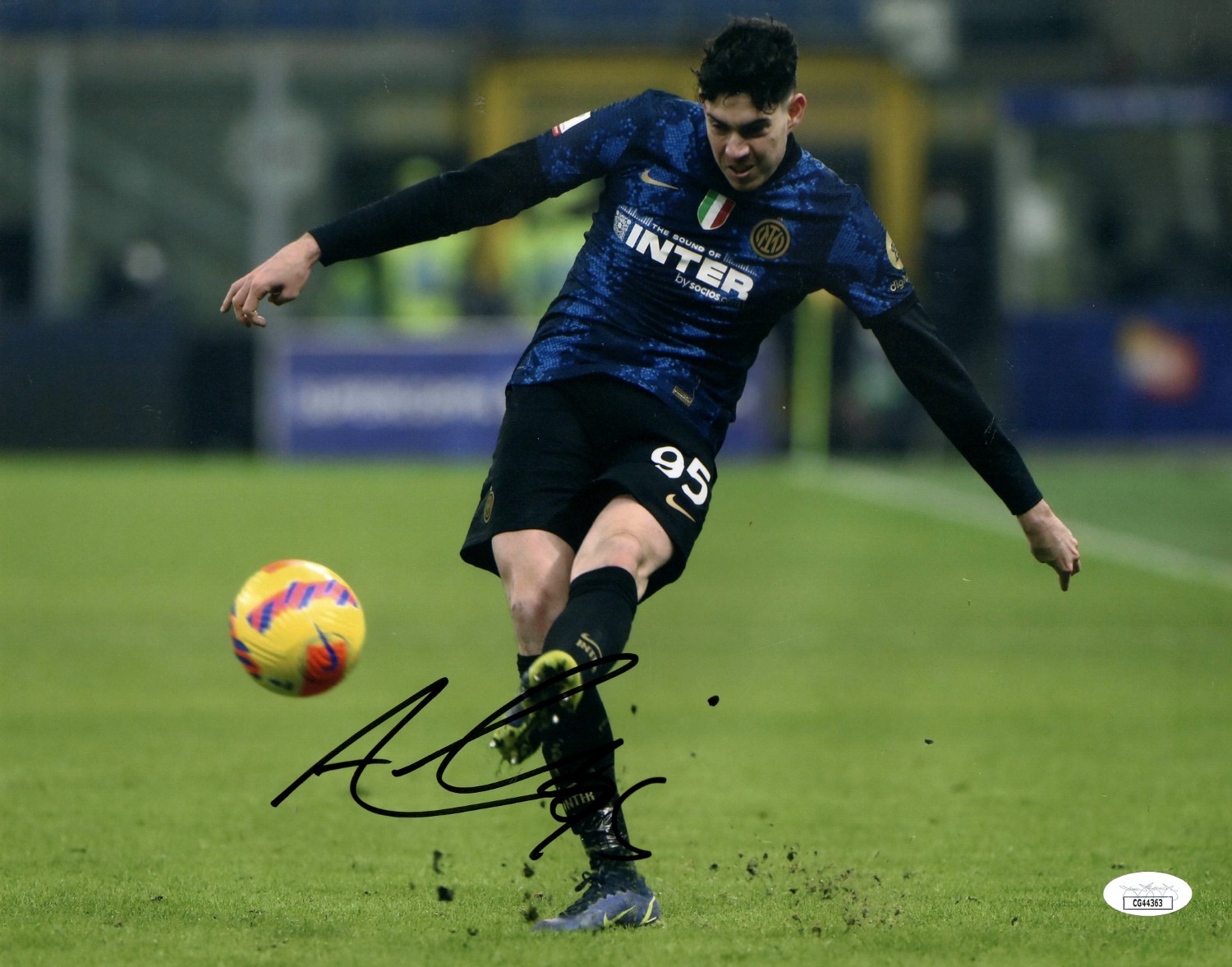 Alessandro Bastoni Signed Autograph 11X14 Photo Inter Milan Kicking JSA CG44372
