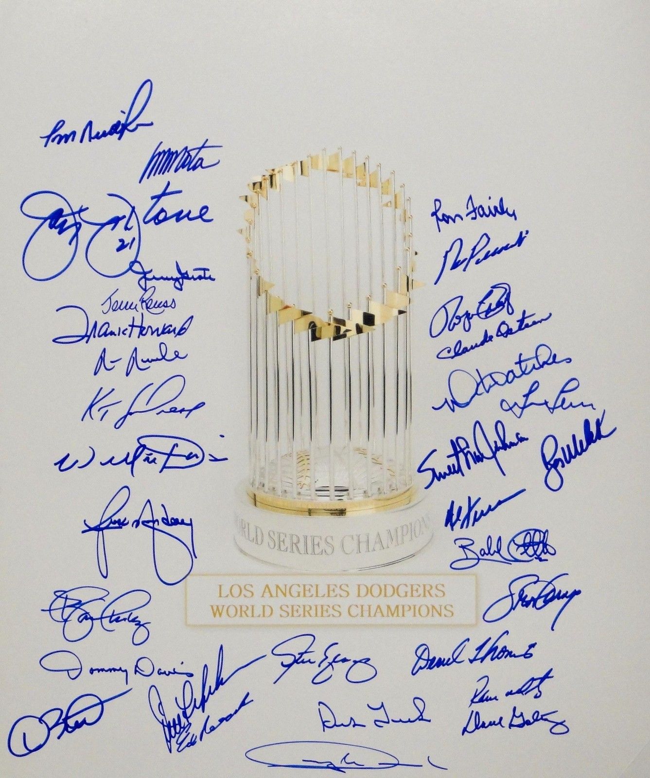 Bob Welch Landreaux Leary Fairly Osteen Dodgers WS Champions 16x20 Signed Photo