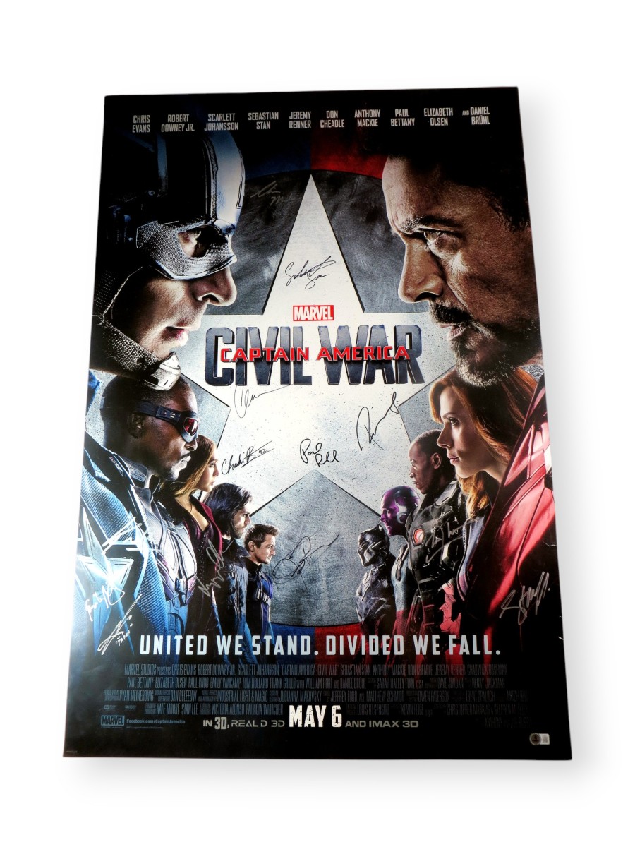 Captain America Civil War Signed 27X40 Poster Boseman Downey Jr. BAS AE50125