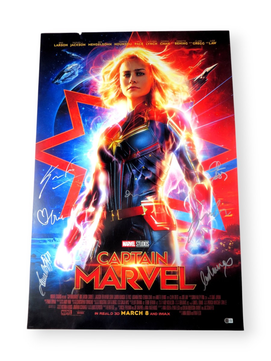 Captain Marvel Multi Signed Autographed 27X40 Poster Law Samuel L Jackson +5 BAS