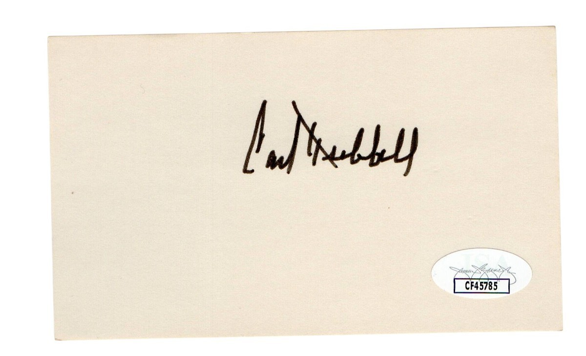 Carl Hubbell Signed Autographed 3X5 Index Card Giants Hall of Famer JSA CF45785