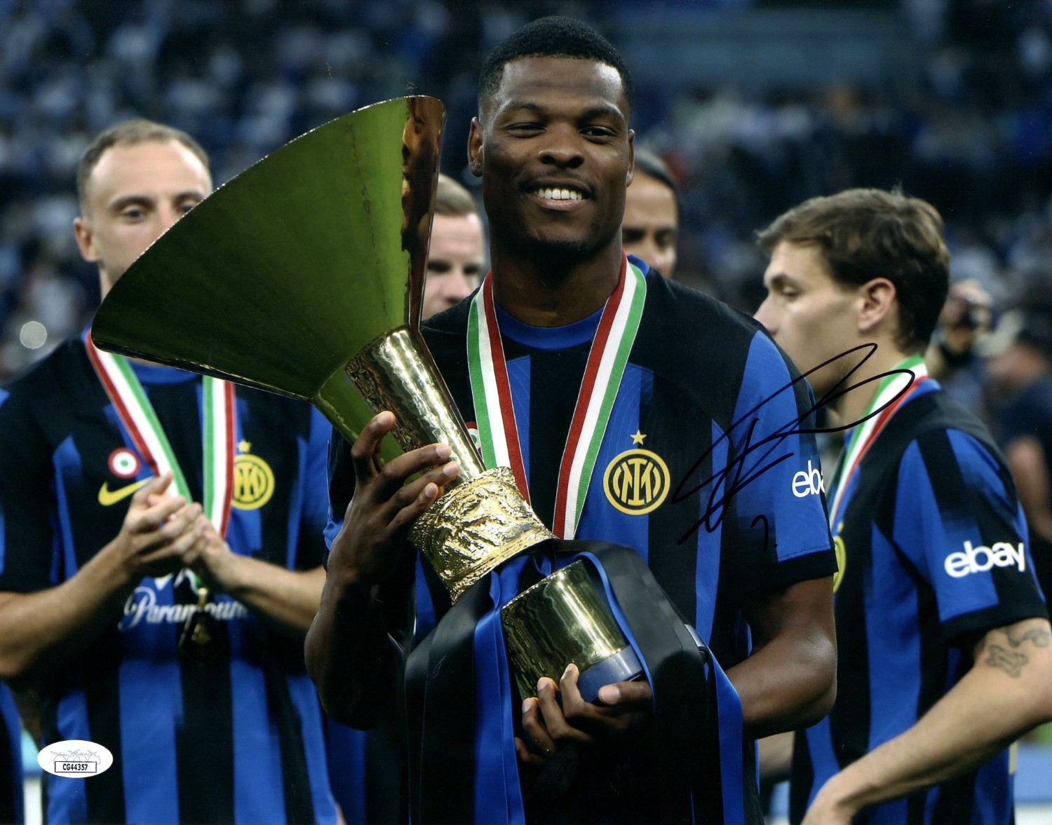 Denzel Dumfries Signed Autographed 11X14 Photo Inter Milan w/Trophy JSA CG44353