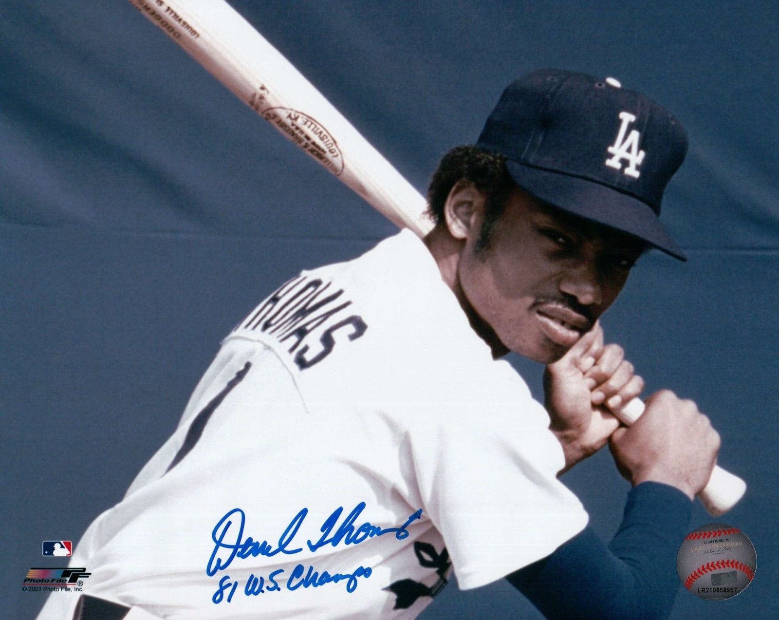 Derrel Thomas Signed 8X10 Photo Autograph "81 WS Champ" Dodgers w/Bat Auto w/COA