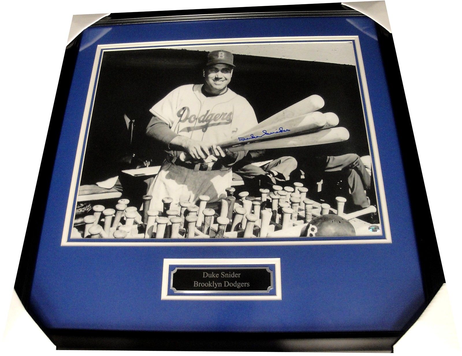 Duke Snider Hand Signed Autographed 16"x20" Photo Custom Framed Holding Bats