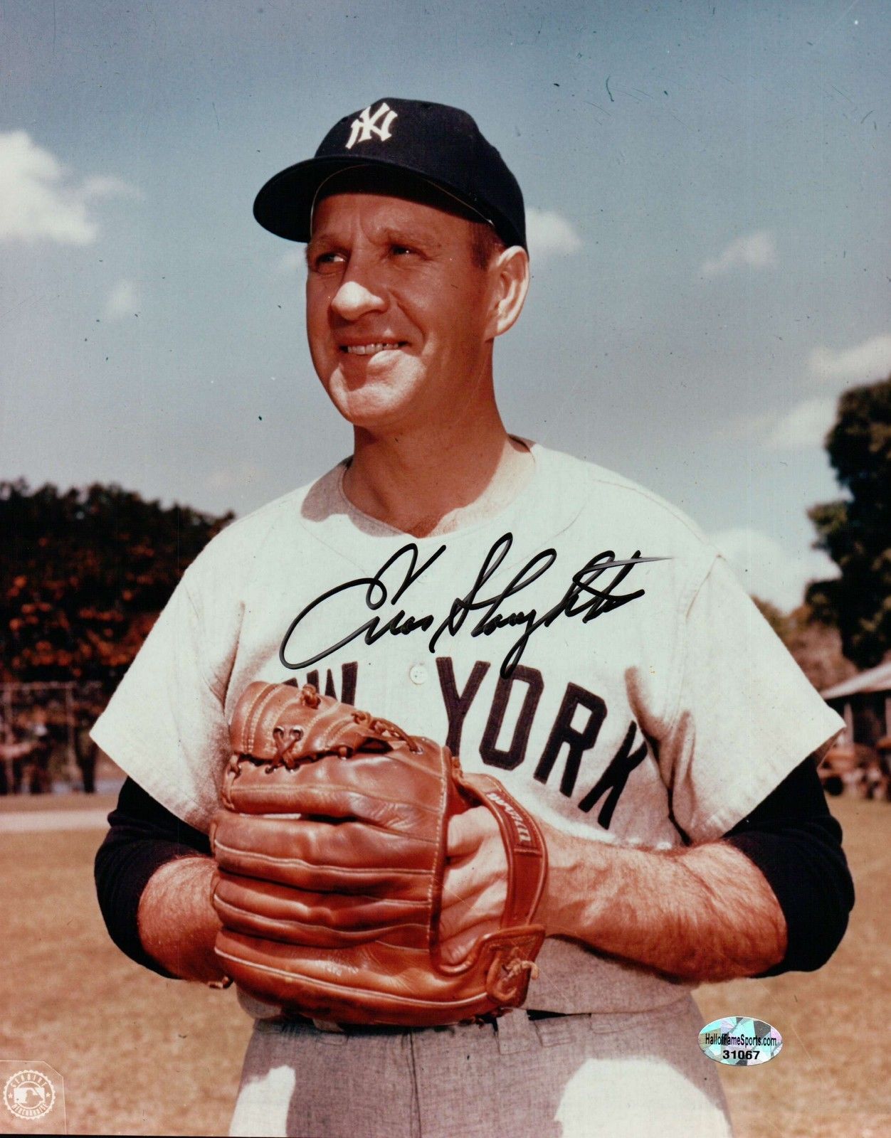 Enos Slaughter Signed Autographed 8X10 Photo New York Yankees Glove Pose BAS