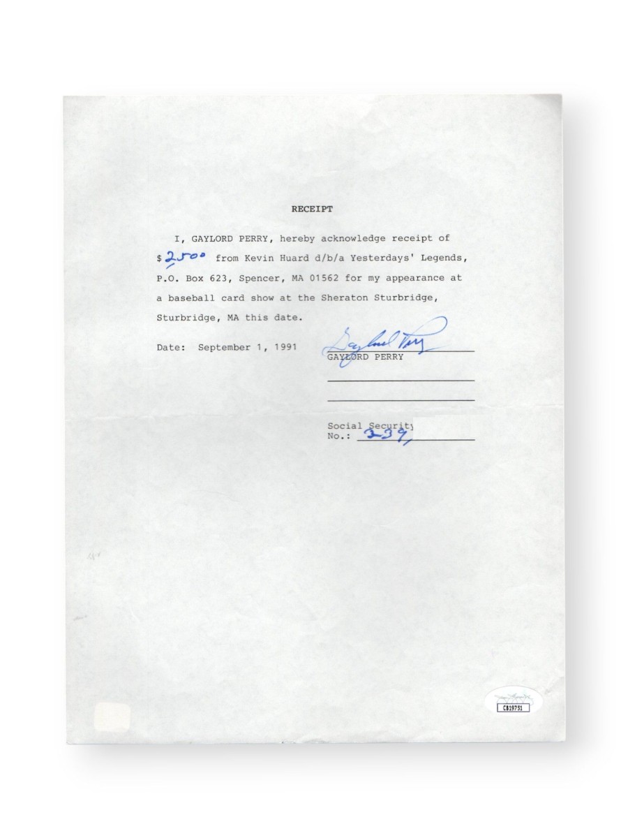 Al Lopez Signed Autographed Appearance Receipt Dodgers HOFer 1990 JSA CB19753