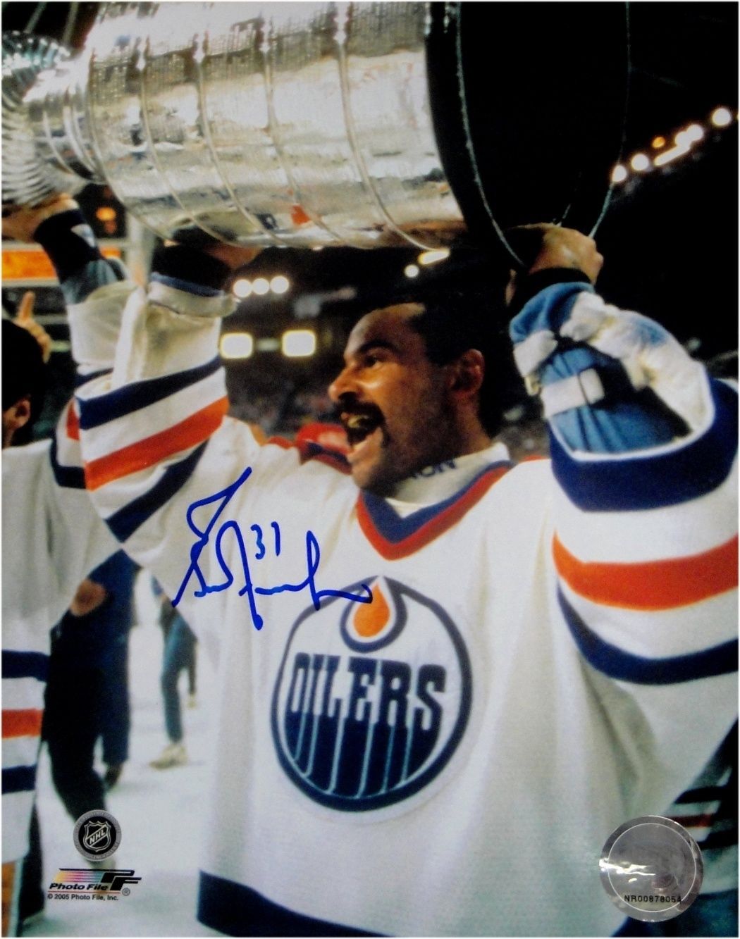 Grant Fuhr Signed 8X10 Autograph Photo Edmonton Oilers Raising Stanley Cup w/COA