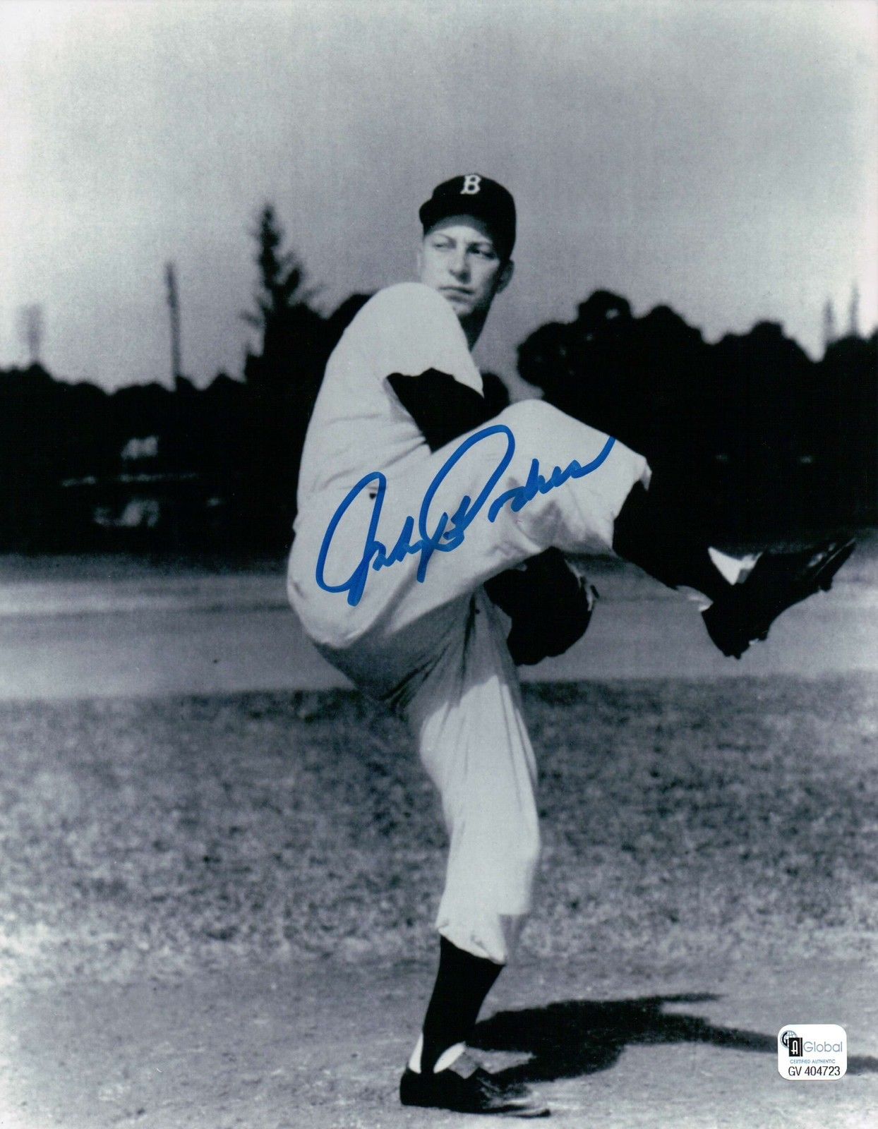 Johnny Podres Signed 8X10 Photo Autograph Dodgers Pose One Leg B/W Auto GAI COA