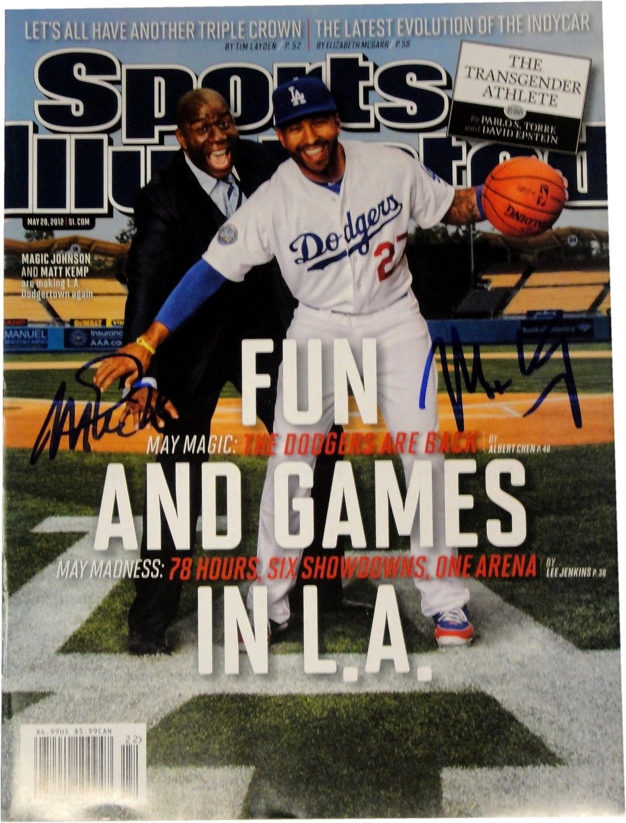 Magic Johnson Matt Kemp Dual Hand Signed Sports Illustrated Magazine COA 25867