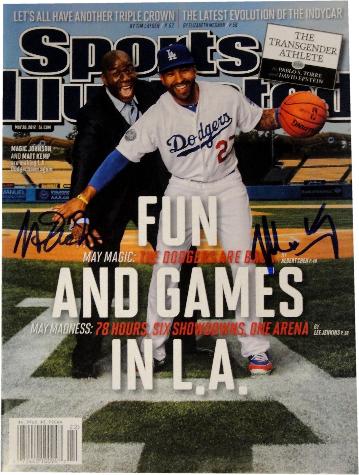 Magic Johnson Matt Kemp Dual Hand Signed Sports Illustrated Magazine COA 25868