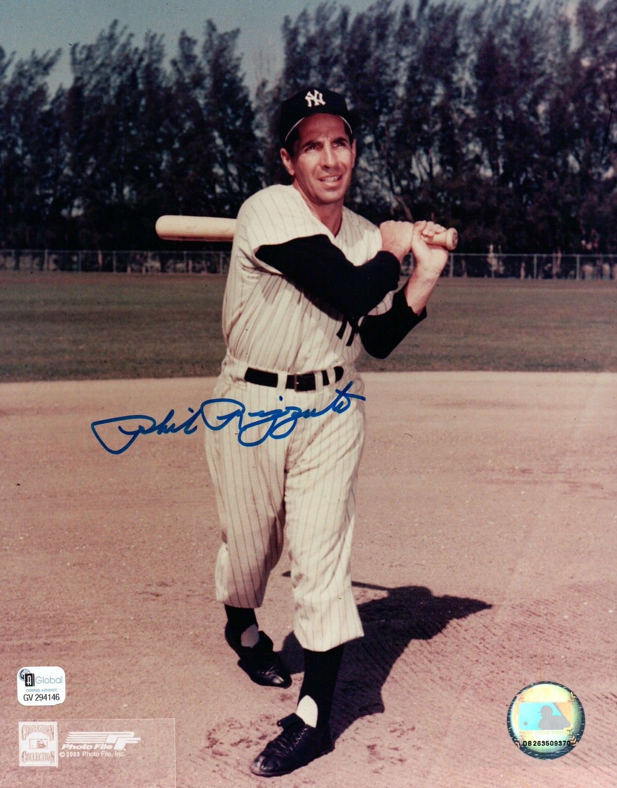Phil Rizzuto Signed 8X10 Photo Autograph Yankees Pose after Swing Auto GAI COA